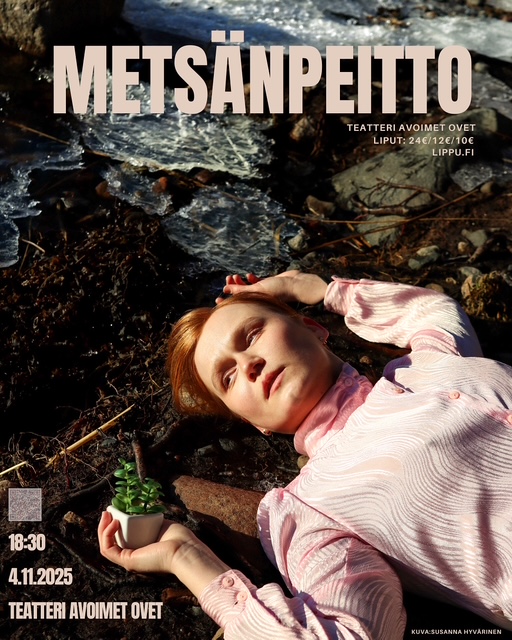Eeva Kaiholan Metsänpeitto-monologissa kuullaan Miia Toivion, Edith Södergranin ja Sirkka Turkan runoja. Eeva Kaihola voitti Veikko Sinisalo Vuoden Nuori Lausuja -kilpailun kesällä 2024 esityksellään Lieveilmiö. Metsänpeitto laajentaa Lieveilmiö -monologin maailmaa ja jatkaa luonnon sekä ihmisen välisen suhteen tutkimista.