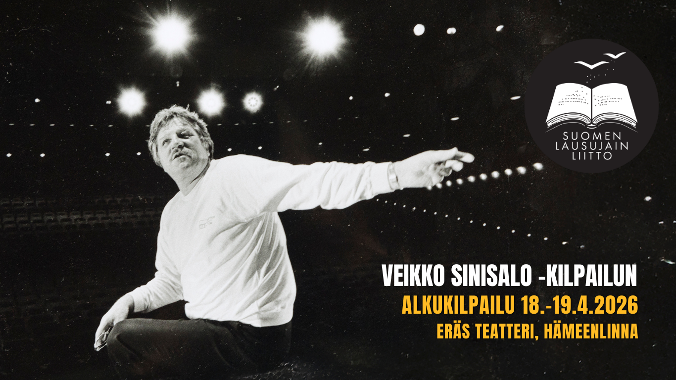 Veikko Sinisalo -kilpailun alkukilpailu nuorille lausujille järjestetään 18.-19.4.2026 Eräs Teatterissa Hämeenlinnassa
